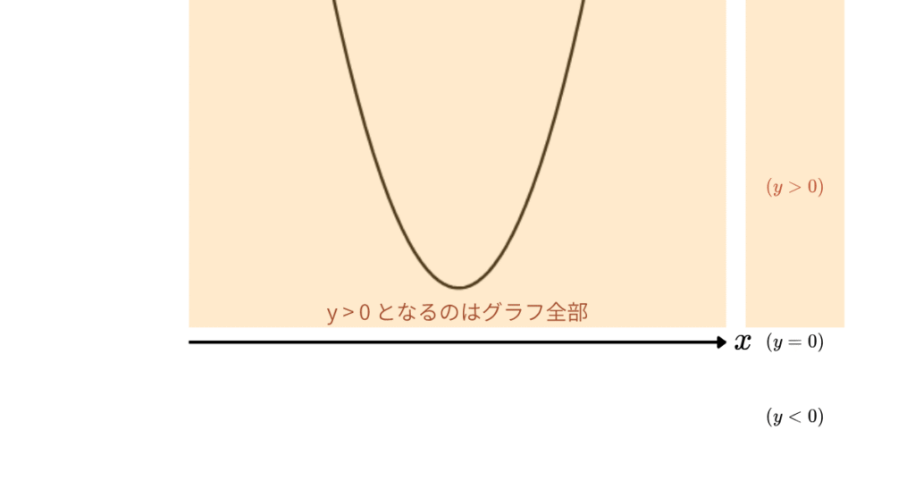 つまり「 \(x\) がどんな値でも、\(y\) は \(0\) より大きい」のです。