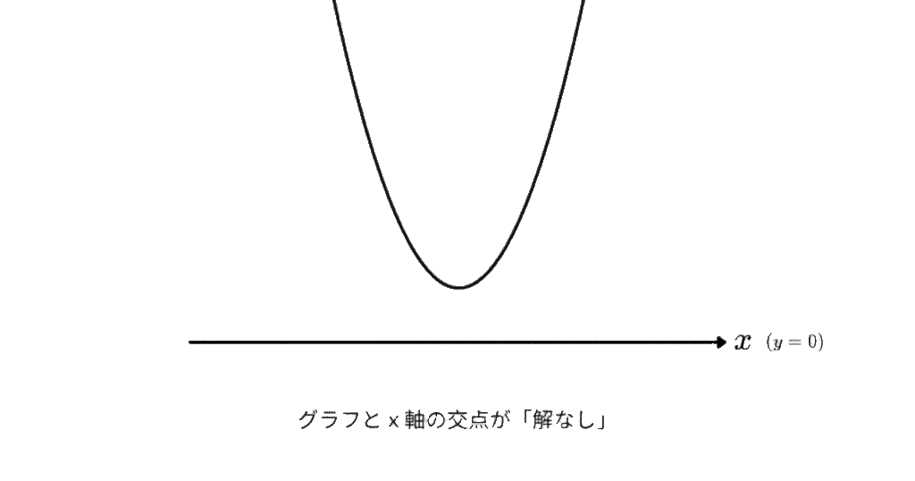【理由】解の公式や判別式の「解なし」は“グラフとx軸が交わらない”こと