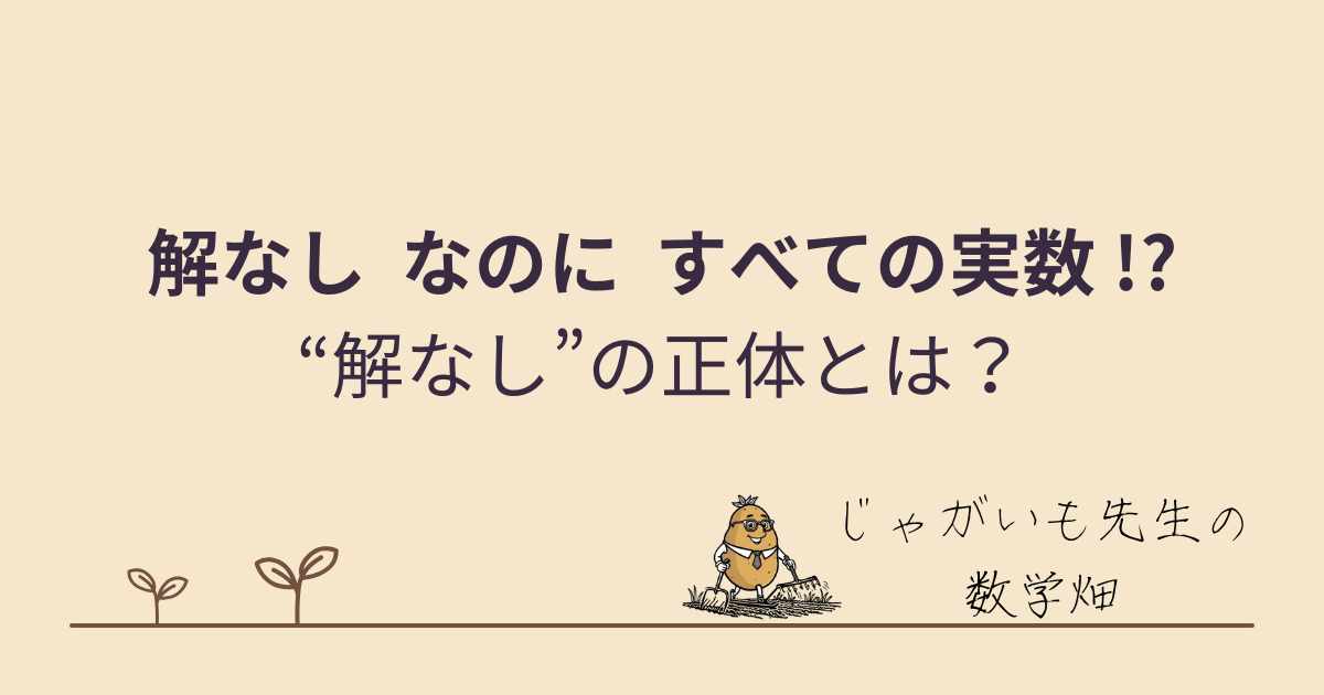 そう!だから“解なし”でも、“すべての実数”になることがあるんだ。